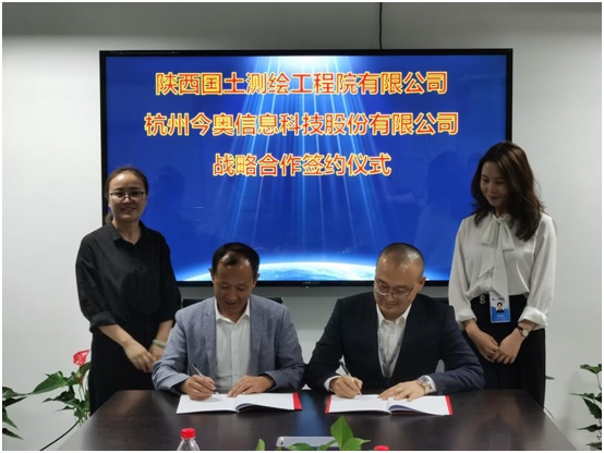2020年5月14日,陜西國土測繪工程院與杭州今奧信息科技股份有限簽訂戰(zhàn)略合作框架協(xié)議。陜西地礦集團(tuán)黨委副書記安增會(huì)出席并見證了簽約儀式,陜西國土測繪工程院黨委書記、執(zhí)行董事張福良,杭州今奧信息科技董事長何玉生出席。陜西國土測繪工程院總經(jīng)理馮永強(qiáng)、杭州今奧科技總經(jīng)理梁曉峰代表雙方在框架協(xié)議上簽字。