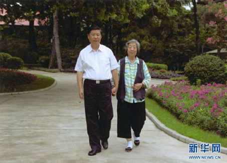 習(xí)近平陪母親齊心散步。新華社發(fā)