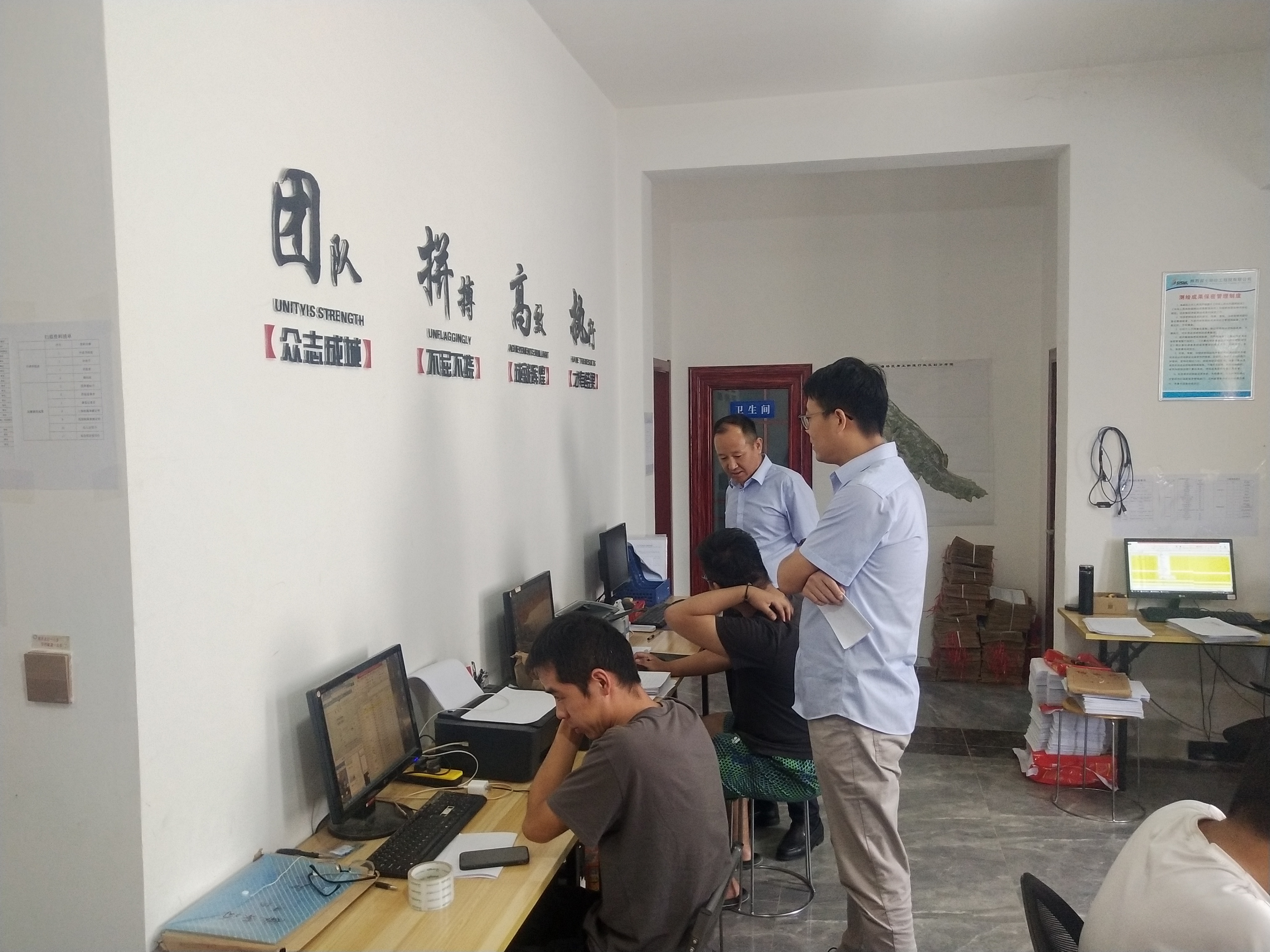 同時,慰問組對安全工作進行了檢查,要求各項目部在兼顧生產進度的同時,做到安全生產警鐘常鳴。作業必須做好各項防護,特別對于山區實地舉證工作,注意用車安全和雨季泥石流、山體滑坡等災害預防工作,必須確保人員安全、車輛安全、生產安全、數據信息安全。并提醒大家繼續做好常態化疫情防控工作。通過慰問和安全檢查,讓員工切實感受到單位領導的關懷,增強了大家的歸屬感和凝聚力。9月16日,工會主席黨建宏、副總經理崔安波赴灞橋項目部洪慶項目組,對冒雨堅持工作的員工進行了慰問。