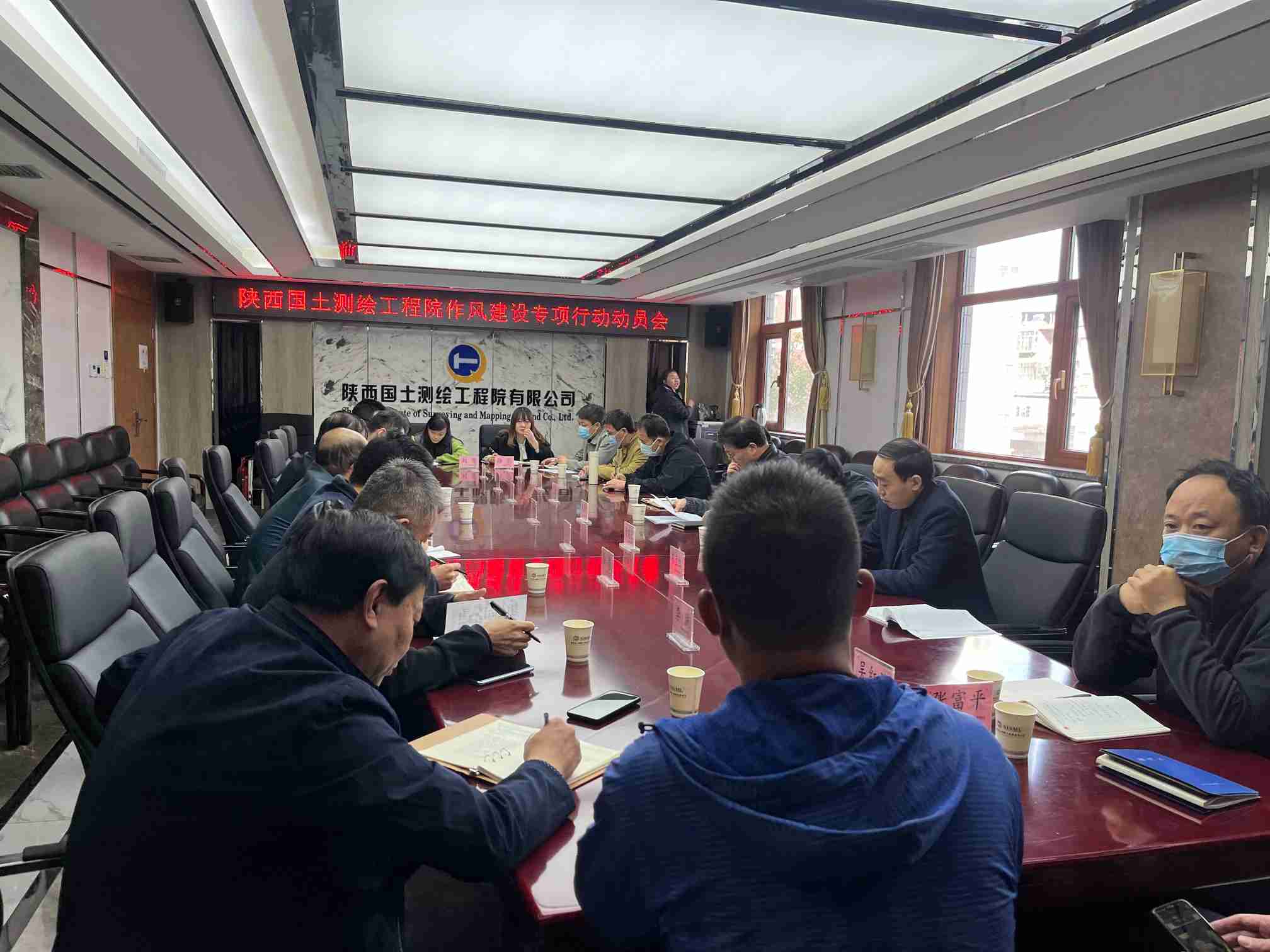 10月9日上午,陜西國(guó)土測(cè)繪工程院有限公司召開(kāi)作風(fēng)建設(shè)專(zhuān)項(xiàng)行動(dòng)動(dòng)員會(huì)議,陜西國(guó)土測(cè)繪工程院有限公司副總經(jīng)理董乾坤主持會(huì)議。紀(jì)委書(shū)記黨建宏、副總經(jīng)理劉小林,各支部書(shū)記及支部委員、各部門(mén)負(fù)責(zé)人和分(子)公司負(fù)責(zé)人參加會(huì)議。