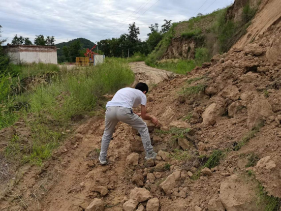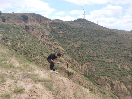 子長市是典型的黃土高原,這個季節,一刮大風就得下暴雨。“下雨不上山”是當地老百姓常年勞作總結出的經驗,因為都是土路,經過泥水沖刷,就會溝壑復雜、濕滑難行。但這些都阻擋不了田靜、趙博琪堅定的步伐。身披雨衣,踩過泥濘,他們滑倒過、淋透過,甚至有時候得手腳并用通過泥坑,但他們還是會克服困難繼續前進,只是怕耽誤項目進度。大家擔心安全勸他們下雨就別去了,他們說:“車上不去,我們還有倆條腿,年輕人嘛,吃點苦沒啥,我們肯定會注意安全,確保按時完成任務”。他們扛著測量儀器,一步一步向山上走去。