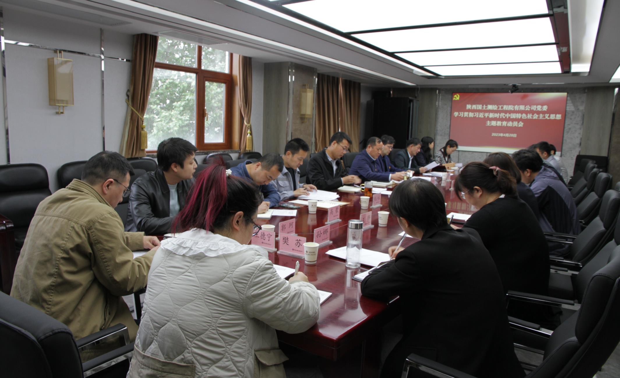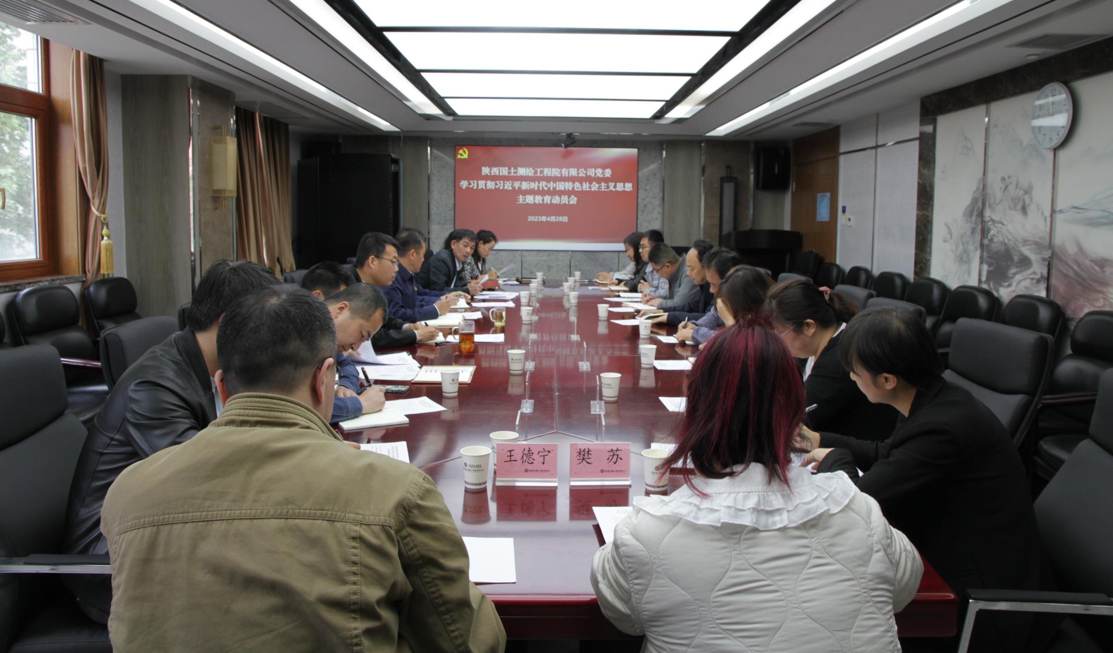 4月28日上午,陜西國土測繪工程院有限公司黨委召開學習貫徹習近平新時代中國特色社會主義思想主題教育動員會。公司黨委書記、執行董事、總經理馮永強作動員講話,黨委委員、紀委書記黨建宏主持會議并宣讀公司主題教育實施方案,其他班子成員及中層黨員干部參加會議。