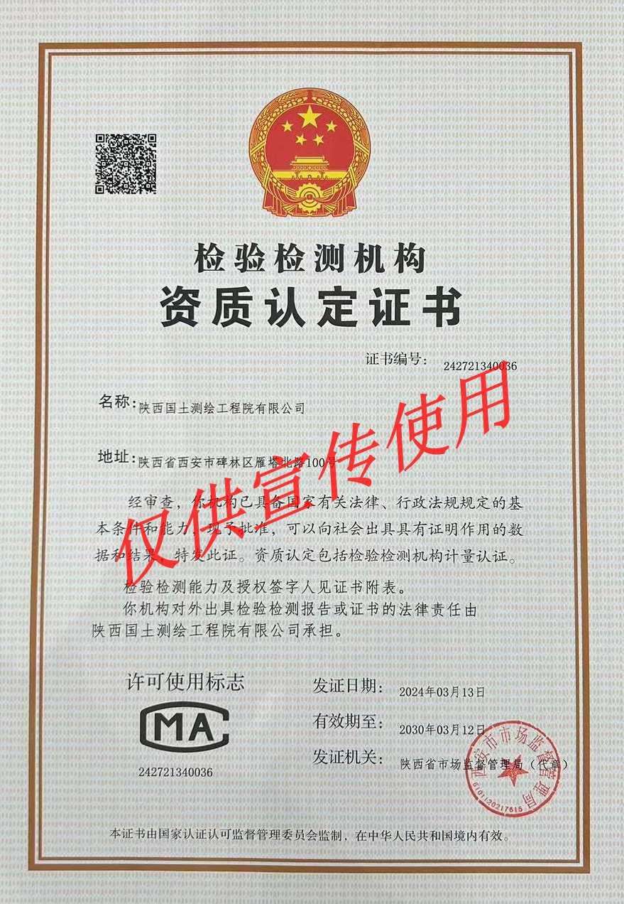 近日,經陜西省市場監督管理局批準,陜西國土測繪工程院成功取得檢驗檢測CMA資質認定證書,成為陜西省第三家取得CMA資質的測繪地理信息單位,證書的取得是公司加強資質建設,擴展新業務、推動高質量發展的重要舉措,標志著公司邁向開展測繪地理信息行業檢查驗收業務的新征程。