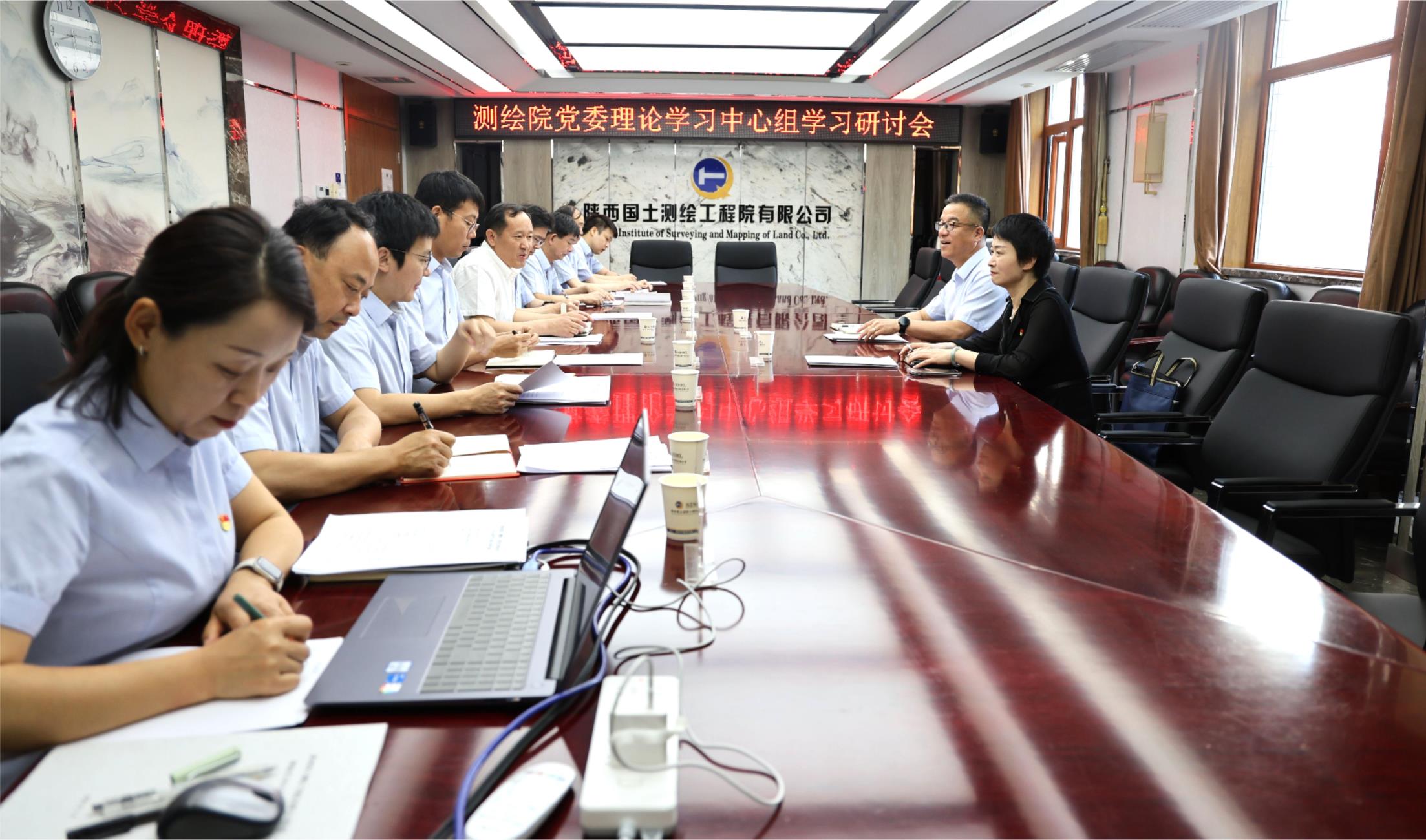 5月15日上午,陜西國土測繪工程院召開黨委理論學習中心組學習研討交流會。集團公司黨委委員、副總經理黨向陽到會旁聽指導,行政工作部主任馮鈺一同參加。公司黨委書記、執行董事、總經理馮永強主持會議,領導班子成員、相關部門負責人參加會議。