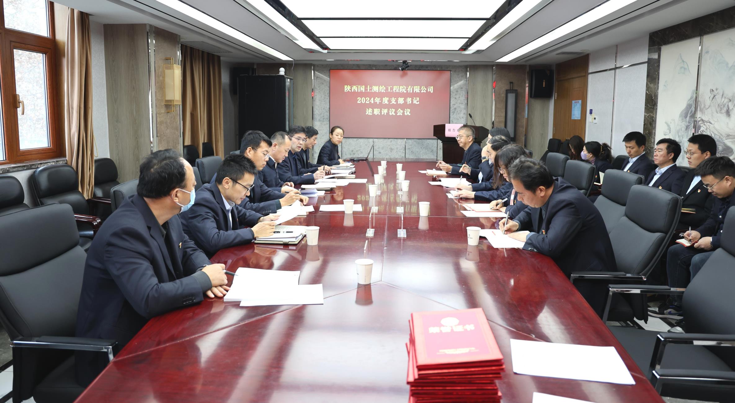 1月8日上午,陜西國土測繪工程院有限公司黨委召開2024年度支部書記述職評議會議。公司黨委書記、執行董事、總經理馮永強出席會議并講話,黨委副書記、工會主席董乾坤主持會議,其他領導班子成員及各支部書記、黨員代表參加會議。