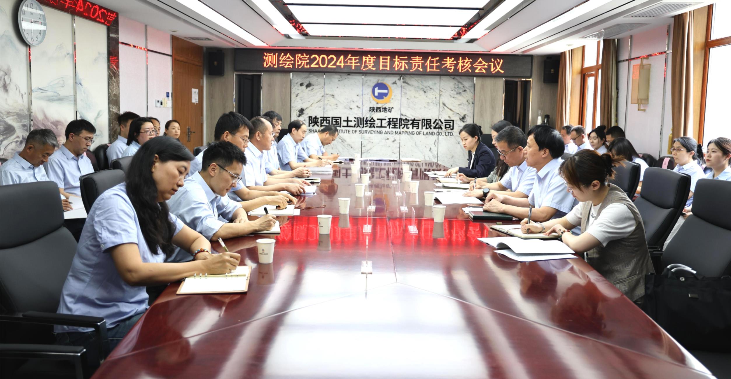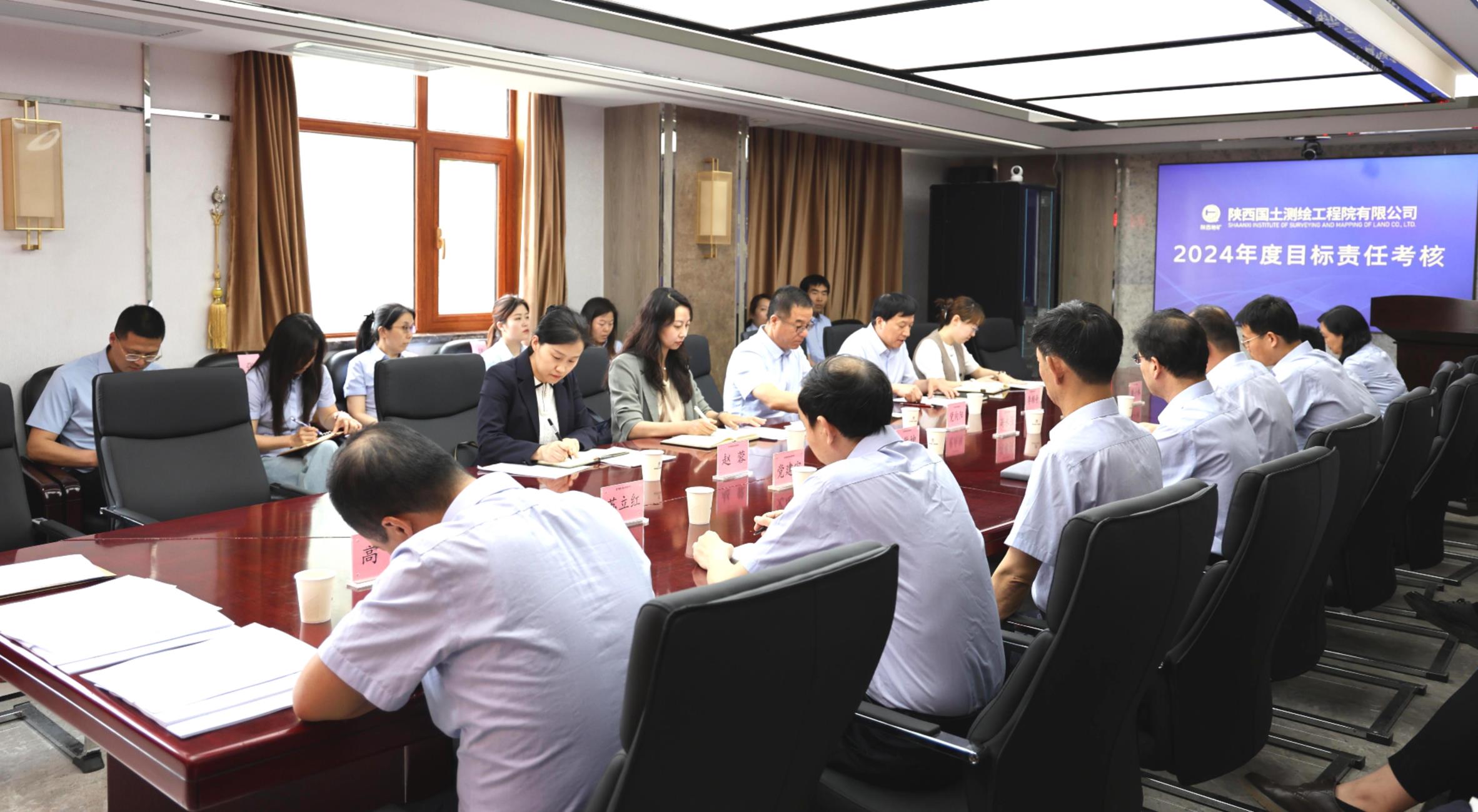 4月27日下午,陜西地礦集團黨委副書記黨向陽帶領考核組赴陜西國土測繪工程院,開展2024年度目標責任考核工作。集團公司財務資產部主任李順亭主持會議,公司領導班子成員、各部門負責人及職工代表30余人參加會議。