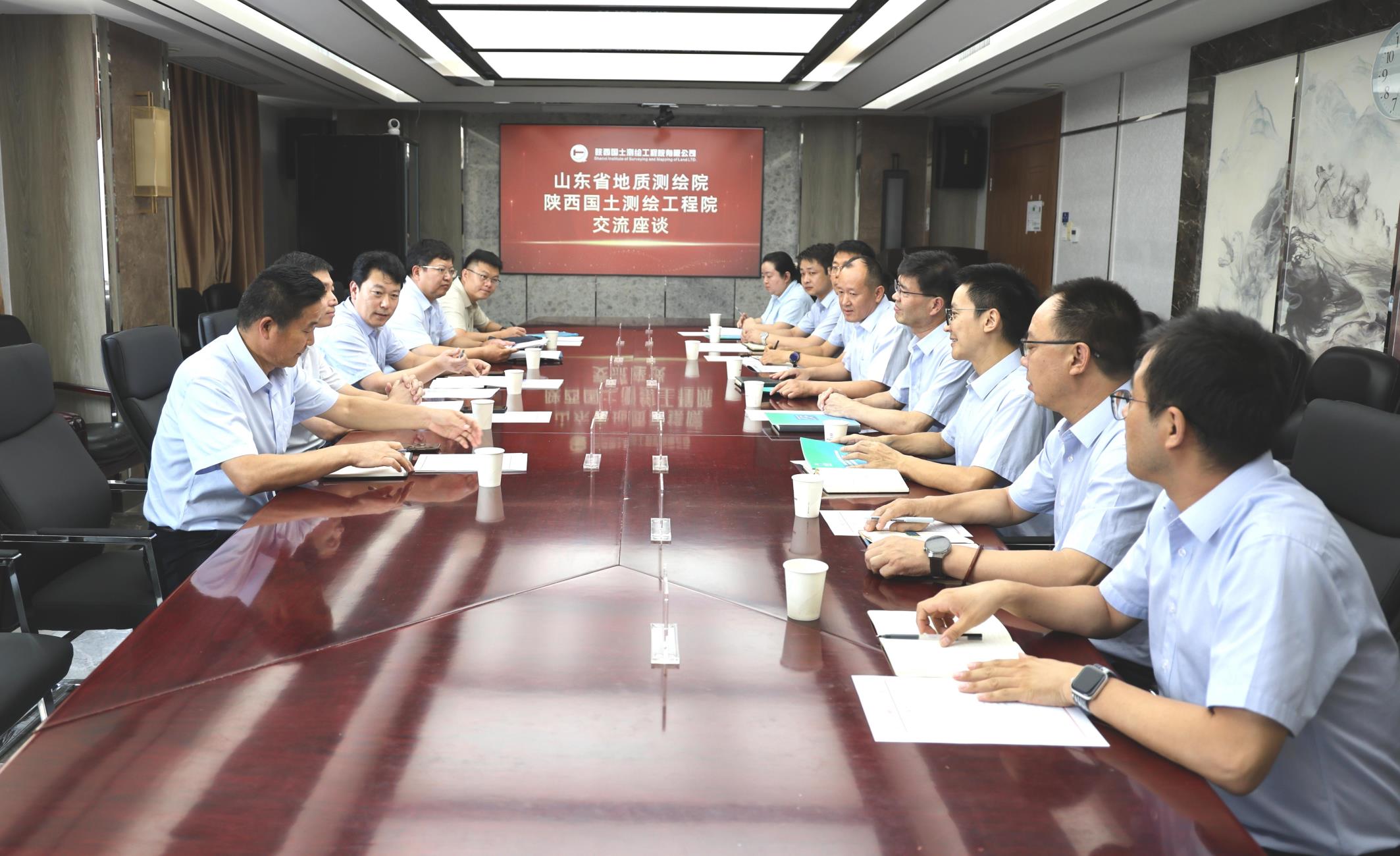7月16日下午,山東省地質測繪院黨委書記、院長徐福強,黨委委員、副院長宋佰萬等一行5人蒞臨陜西國土測繪工程院進行座談交流。公司黨委書記、執行董事、總經理馮永強出席座談會,公司班子成員及相關部門負責人參加會議。