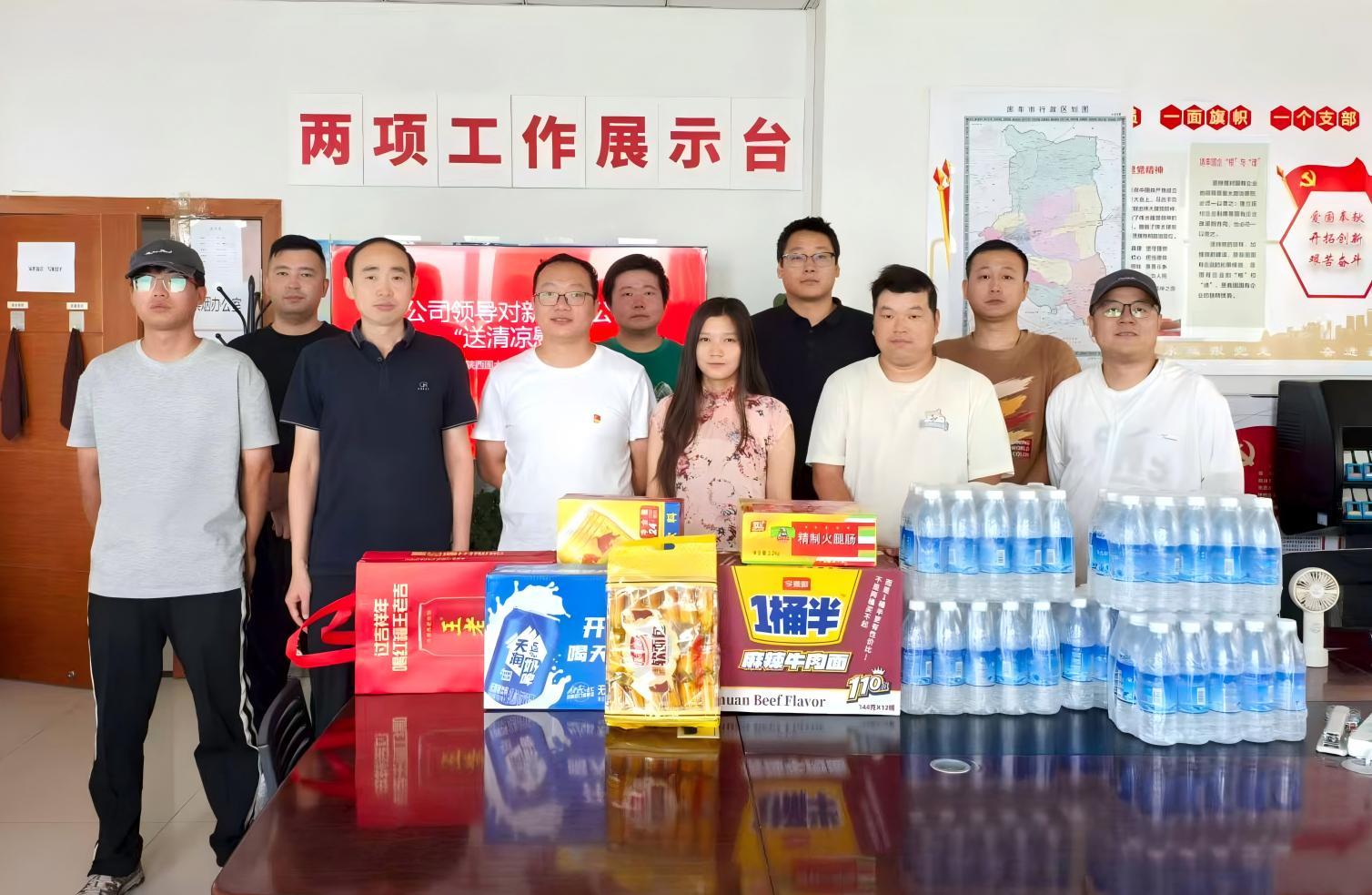 蘇立紅代表公司為一線員工送上清涼慰問品,與大家親切交談,詳細(xì)詢問飲食起居情況,并強調(diào)要做好高溫安全保障,科學(xué)調(diào)整作業(yè)時間,避免高溫時段野外作業(yè),配齊防暑用品和急救藥品,確保員工安全,同時勉勵大家發(fā)揚 “三光榮”“四特別”精神,在保障安全的前提下全力推進(jìn)項目。
